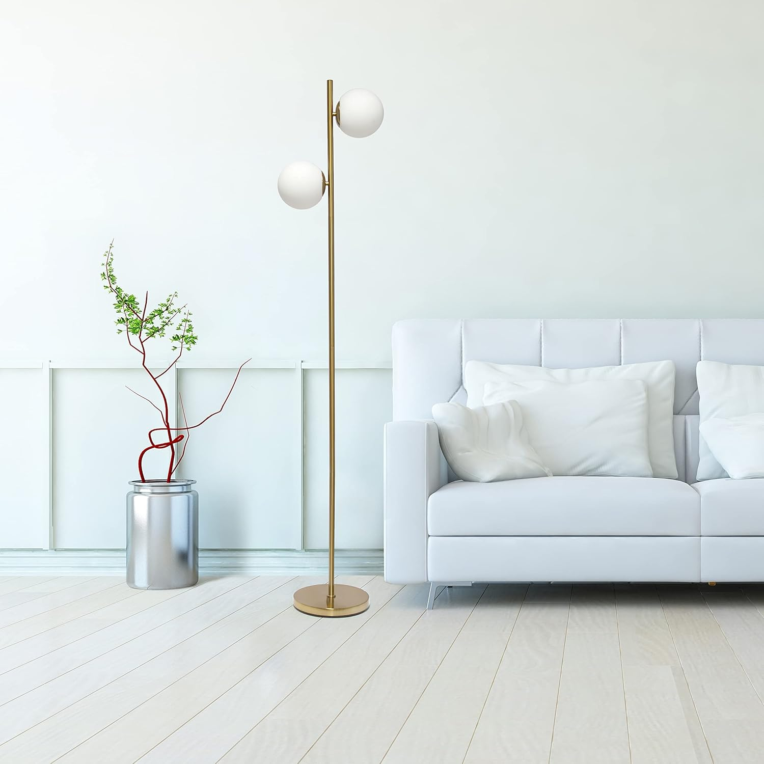 - Diseño moderno de mediados de siglo: el elegante y delgado poste de metal está conectado a tierra con una base redonda en un acabado dorado. Combinado con dos tonos redondos blancos, este aspecto general es ideal para los tipos de decoración moderna, contemporánea y de mediados de siglo.